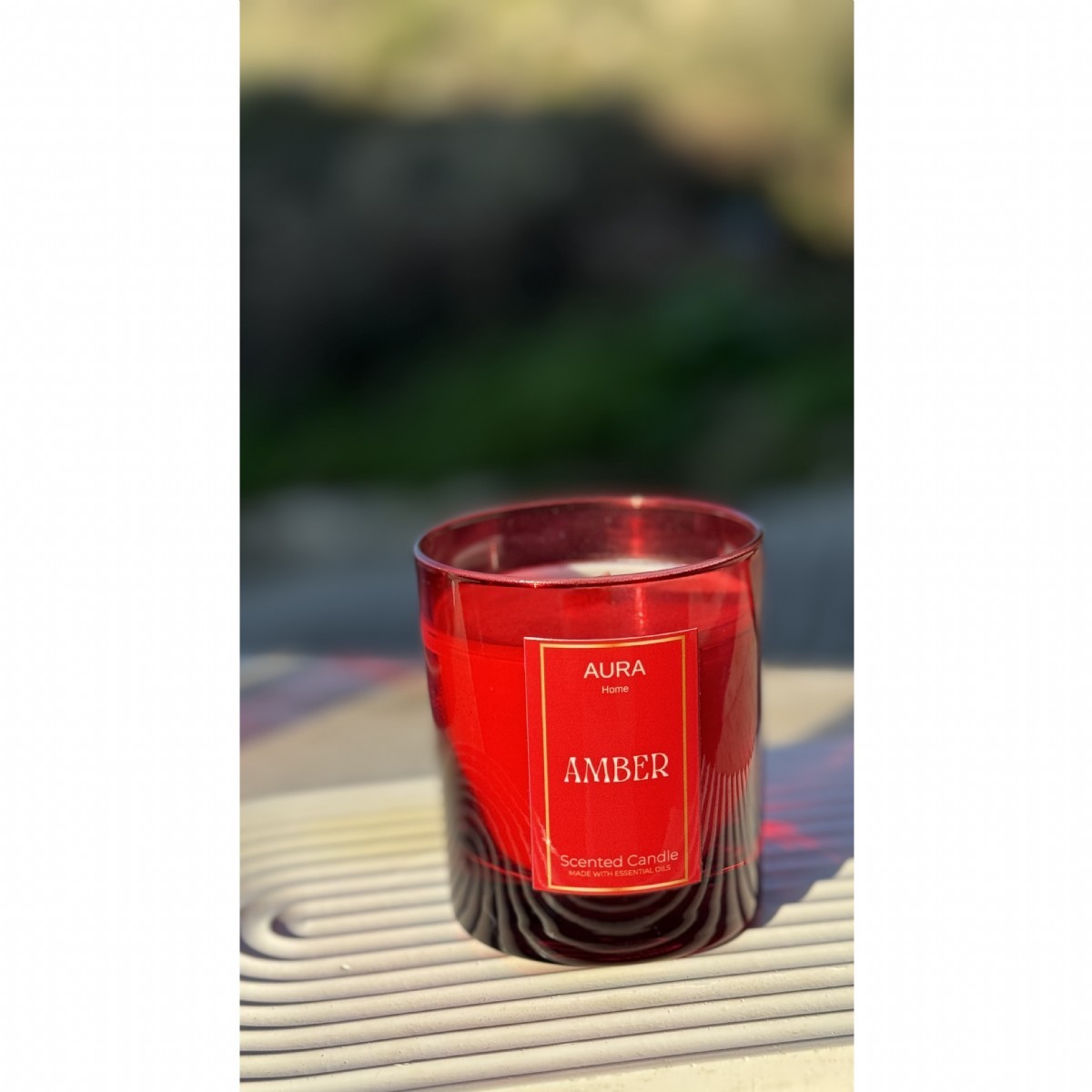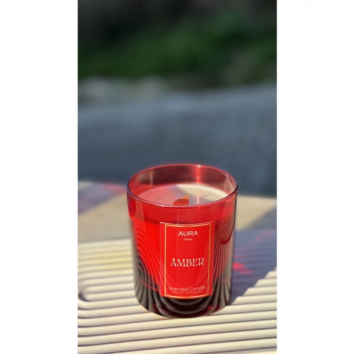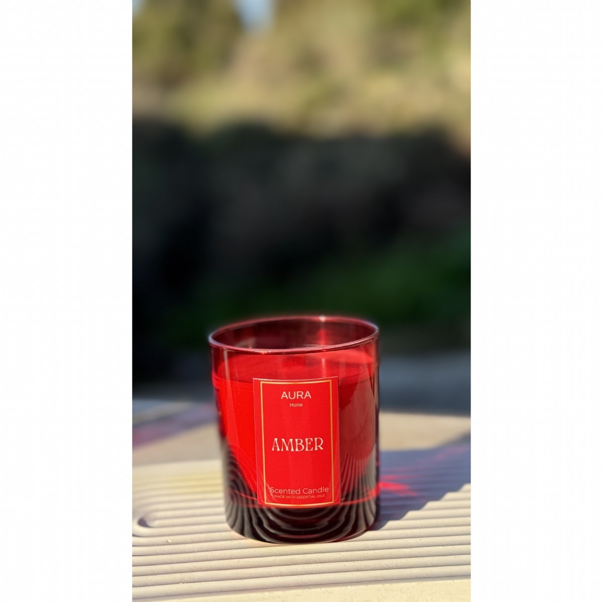 Aura Home Amber Scented Candle 580gr, Kırmızı Cam