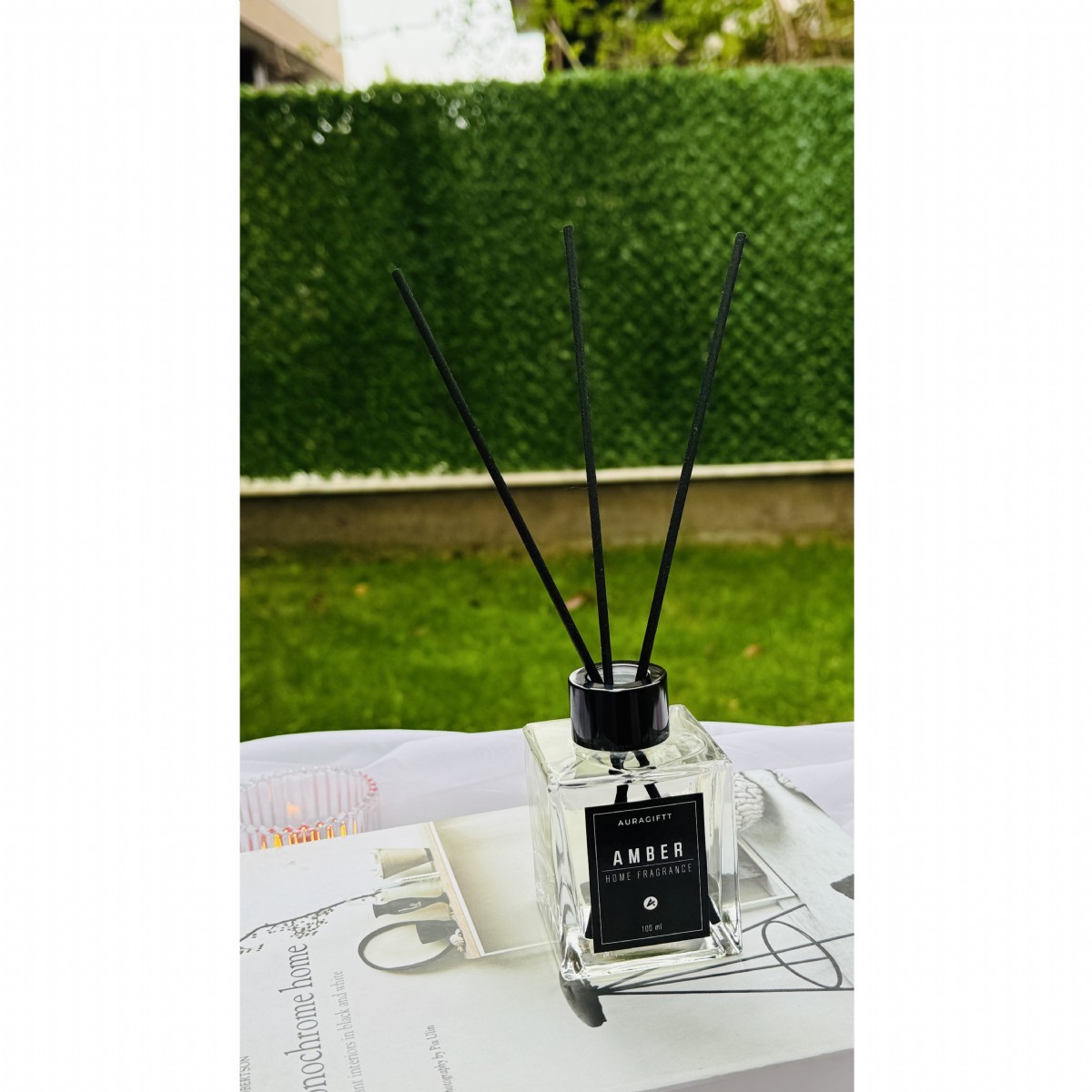 Amber Kokulu Fiber Bambu Çubuklu Oda Kokusu, Amber Cam Şişe, 100 ml