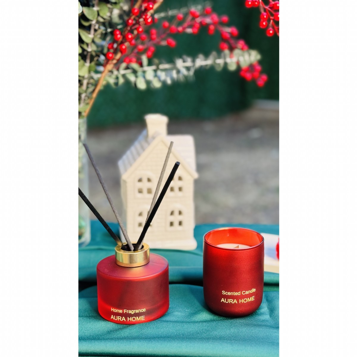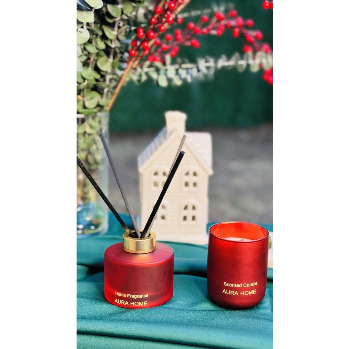 2'li set, mar kırmızı renkli, 150 ml çubuklu oda kokusu ve 330gr iconic bardak soya mum gönderilecektir.